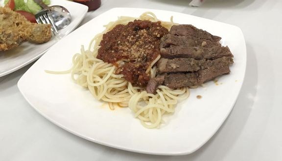 Mỳ ý sốt bò + 100gr bò: Sốt thì hết chê, múc muỗng nào muỗng nấy toàn thịt, vị đậm đà. Thịt bò thì rất mềm, ngon hơn các chỗ chi nhánh trước kia nhiều, vị nêm nếm vừa miệng. Mì thì cả hai phần đều nhiều ăn no căng bụng luôn